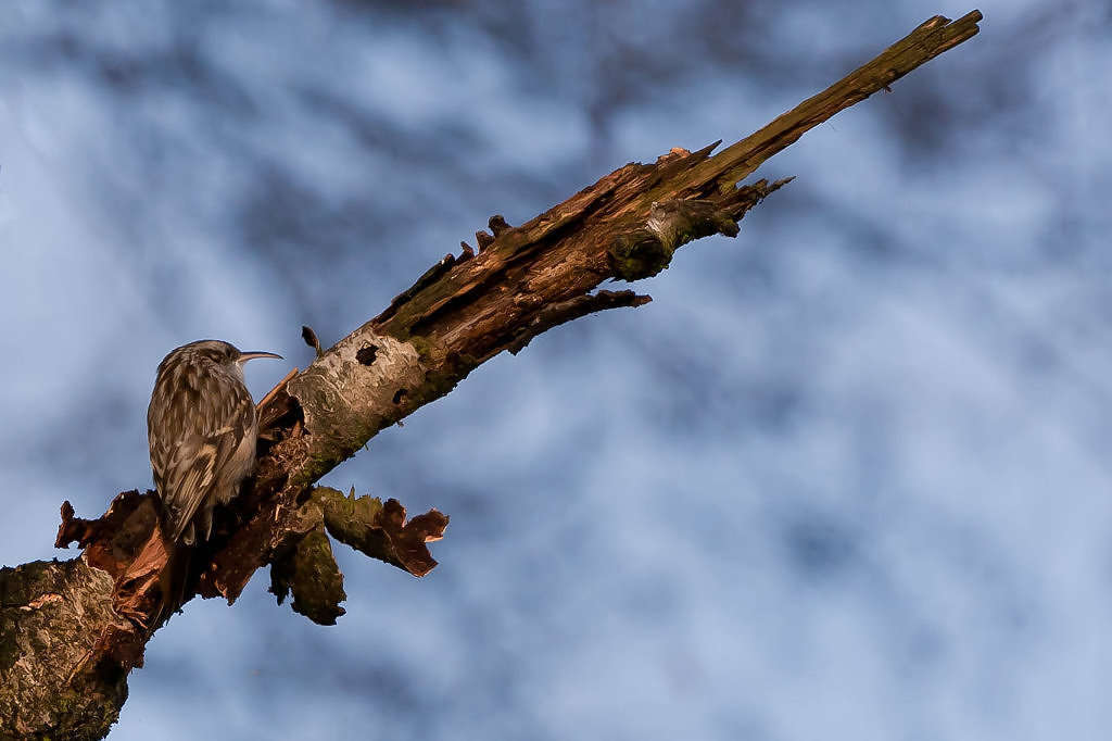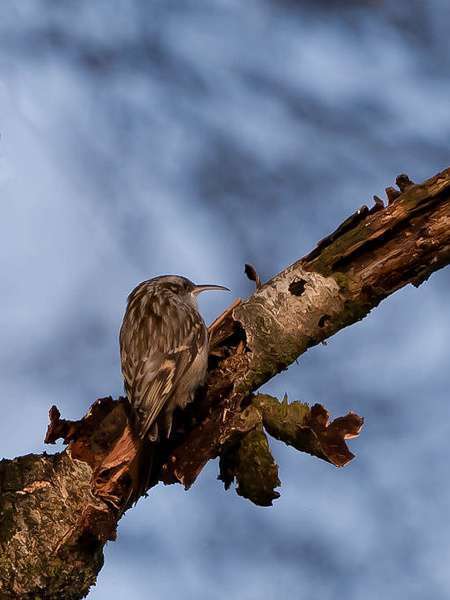 <p>Petit oiseau arboricole, le <strong>grimpereau des jardins</strong>, inspecte inlassablement l’écorce des arbres à la recherche d’insectes. Toujours pressé, il se déplace avec agilité de bas en haut des troncs. Cet oiseau de 7 à 8 grammes se reconnaît à son dos brun rayé et son ventre blanc, son bec fin long et arqué et son sourcil blanc. Il construit un nid douillet de brindilles, d’herbes sèches, garni de plumes laine et crin, placé sous une écorce soulevée ou un trou d’arbre, dans lequel il élève une nichée de 5 ou 6 petits.</p>