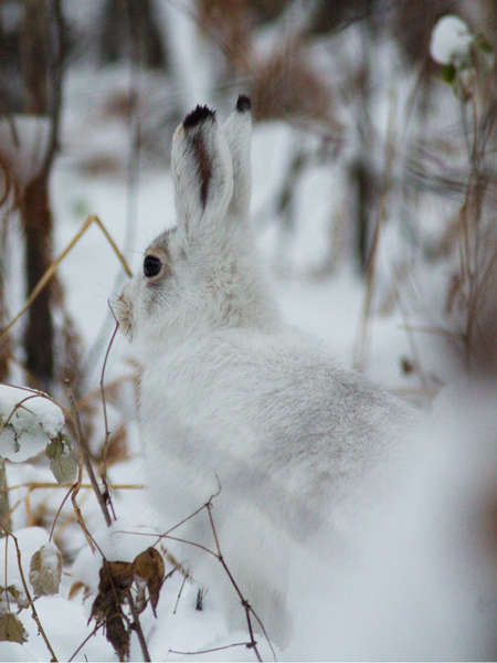 <p>Le Lièvre variable est semblable au <a href="http://www.ecobalade.fr/espece/lievre-d-europe">Lièvre d'Europe</a>. Il se différencie par une taille plus petite, des oreilles plus courtes et des pattes plus larges qui lui servent de "raquettes" dans la neige. Ceci lui permet de limiter la perte de calories. Ce lièvre est considéré comme le roi du camouflage. En été, il arbore un pelage gris brun avec les pattes blanches pour se cacher entre les rochers. En hiver, ses poils deviennent tous blancs pour se dissimuler dans la neige.</p>