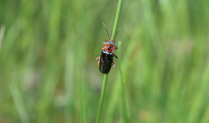 <p>Le cantharis rustica aussi appelé le moine, est un coléoptère rouge et noire. On le reconnait aisément grâce à sa tâche noire en forme de coeur sur son cou (le pronotum).</p>
