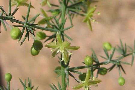 Ce buisson épineux est couvert de petites feuilles comme des aiguilles. Ses tiges sont rigides et souples à la fois. Peu après la floraison, on observe ses fruits, petites baies rouges puis noires. Comme beaucoup de fruits sauvages, ils sont toxiques pour l’homme. Chaque année, après les pluies du printemps et de l'automne, la plante émet de nouvelles pousses donnant les asperges comestibles typiques. On la trouve dans une forêt méditerranéenne fraîche, dans la garrigue ou le maquis.
