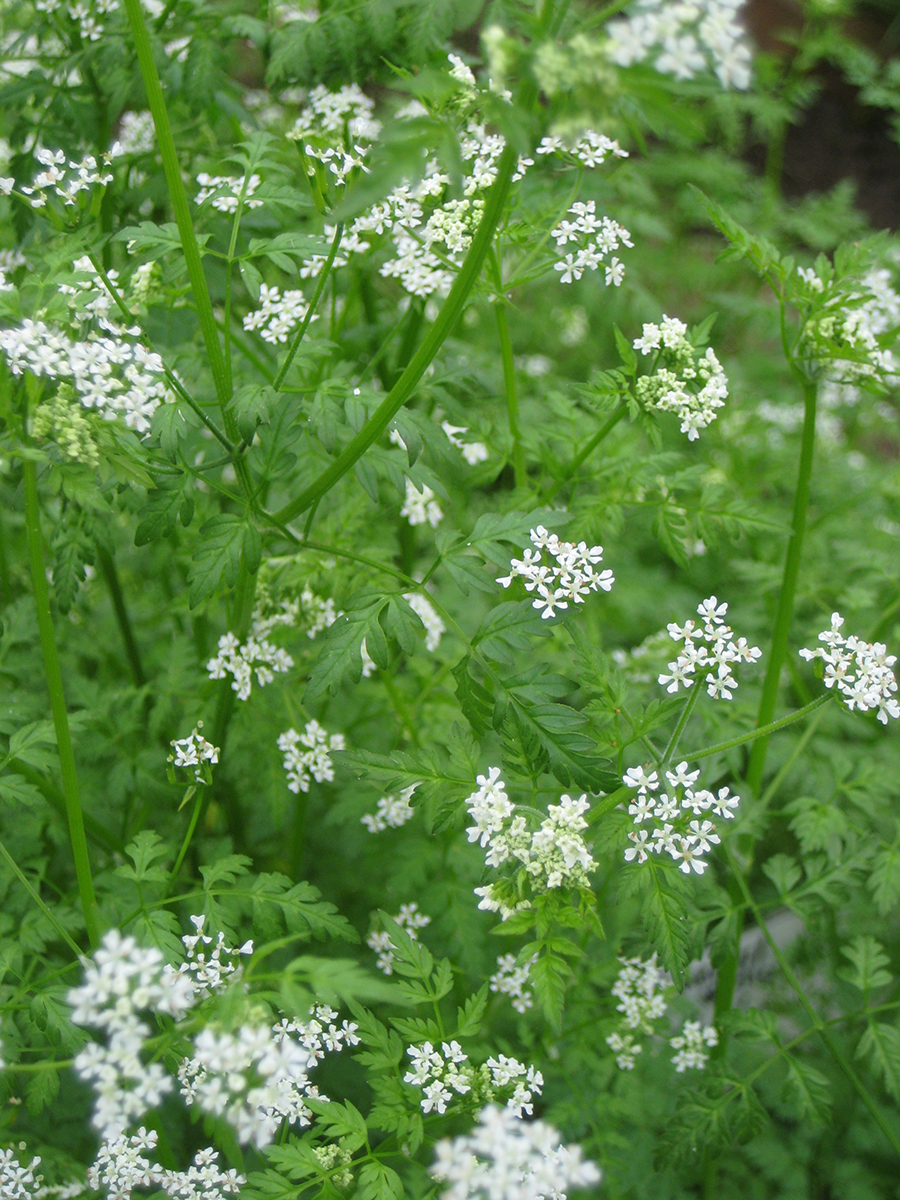 <p class="align-justify" lang="fr-FR" style="margin-bottom: 0cm">Le cerfeuil est une plante annuelle aromatique d'environ 80 cm de haut. Elle possède une racine dite pivotante, très développée et s'enfonçant verticalement (comme une carotte). La tige est légèrement poilue en dessous des nœuds. Les feuilles sont luisantes, poilues et finement découpées, rappelant vaguement une fougère. Il forme de mai à août des ombelles de fleurs blanches, visitées par les insectes pour donner des graines noires pointues et allongées. Très rustique, le cerfeuil est relativement indifférent au climat, au terrain et même aux maladies et parasites. Il est ainsi cultivé partout, majoritairement pour son large usage culinaire, mais également pour ses effets thérapeutiques. Attention, il peut être confondu avec la petite ciguë qui est toxique !</p>