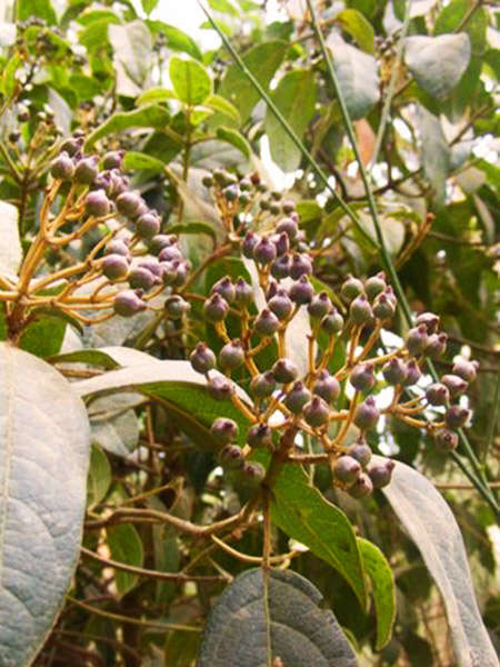 Cette Caprifoliacée est un arbrisseau indigène, très touffu (2 à 3 m de haut). Ses feuilles sont persistantes, opposées, coriaces et ovales. Elles sont vert foncé, luisantes dessus et un peu duveteuses dessous. Ses belles inflorescences blanches donnent des fruits noirs bleutés non comestibles. Il accepte tous les sols, même calcaires. Il préfère les endroits ensoleillés mais supporte bien la mi-ombre. Le laurier-tin est présent dans les bois de feuillus, les chênaies, dans les garrigues et les maquis.